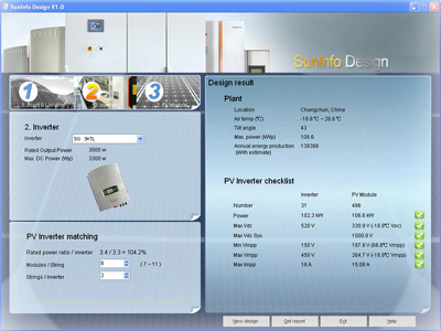 PowerInfo Design是一款簡單易用的專業光伏系統設計軟件。僅需少許幾次點擊和填入必要的參數,便可以自動選擇適合的陽光逆變器并生成一份詳細的設計方案。設計光伏發電系統,就這么簡單,PowerInfo Design,您信賴的光伏系統設計伙伴。
