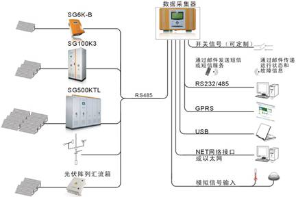 數(shù)據(jù)采集器是專門研發(fā)的電站通訊監(jiān)控產(chǎn)品,不僅利用顯示屏顯示數(shù)據(jù)信息還可以通過網(wǎng)絡對大型光伏發(fā)電站進行監(jiān)控。可以為客戶提供多種方式、量身定做的光伏電站監(jiān)控方案。數(shù)據(jù)采集器用于處理光伏系統(tǒng)電站數(shù)據(jù),可與應用于光伏并網(wǎng)系統(tǒng)的光伏并網(wǎng)逆變器進行通訊,既可以對單臺逆變器進行監(jiān)控,也可以對數(shù)十臺至上百臺逆變器進行監(jiān)測。本設備采用標準的數(shù)據(jù)通訊接口,包括RS485/232標準串口,USB,網(wǎng)絡通訊等多種方式,較大限度的與用戶現(xiàn)有系統(tǒng)相兼容,降低成本。數(shù)據(jù)采集器主要用來采集關(guān)于發(fā)電站性能的所有數(shù)據(jù),四行顯示屏和按鍵使系統(tǒng)的調(diào)試和監(jiān)測更為簡單。如果需要對光伏電站進行監(jiān)測,每個單臺逆變器都會通過RS485數(shù)據(jù)線連接到數(shù)據(jù)采集器上。數(shù)據(jù)采集器可以對每臺逆變器的數(shù)據(jù)進行全面監(jiān)測。
