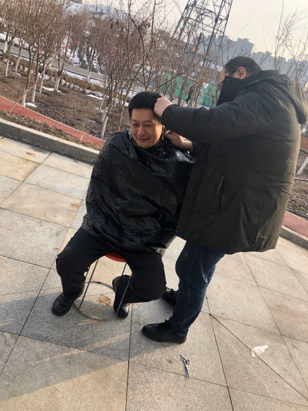 運(yùn)營公司王壘身先士卒,甘做小白鼠,讓兩位“Tony老師”在頭上摸索美發(fā)藝術(shù)的追求,歷經(jīng)2個(gè)小時(shí)后,王壘摸了摸清爽的短發(fā),滿意的笑了。群眾的口碑很快傳開。雖說少了理發(fā)店里推子、吹風(fēng)機(jī)、圍布等裝備,但是即便如此,在春日暖陽的照耀下,兩位“Tony老師”根據(jù)每位同事的要求,用剪刀代替推子,利用休息時(shí)間順利地完成了公司十余名男同事的理發(fā)任務(wù)??矗嶙釉谥讣馕鑴?dòng),一縷縷碎發(fā)飄落,從毛寸到背頭,從碎發(fā)到飛機(jī)頭,一個(gè)個(gè)精神小伙在他們的精心打理下,容光煥發(fā),每個(gè)享受定制服務(wù)的“顧客”不禁豎起來大拇指,一致認(rèn)為這是最適合自己的發(fā)型,比理發(fā)店修剪的還要精湛。他們用實(shí)際行動(dòng)解決了疫情期間工作人員理發(fā)難的問題。