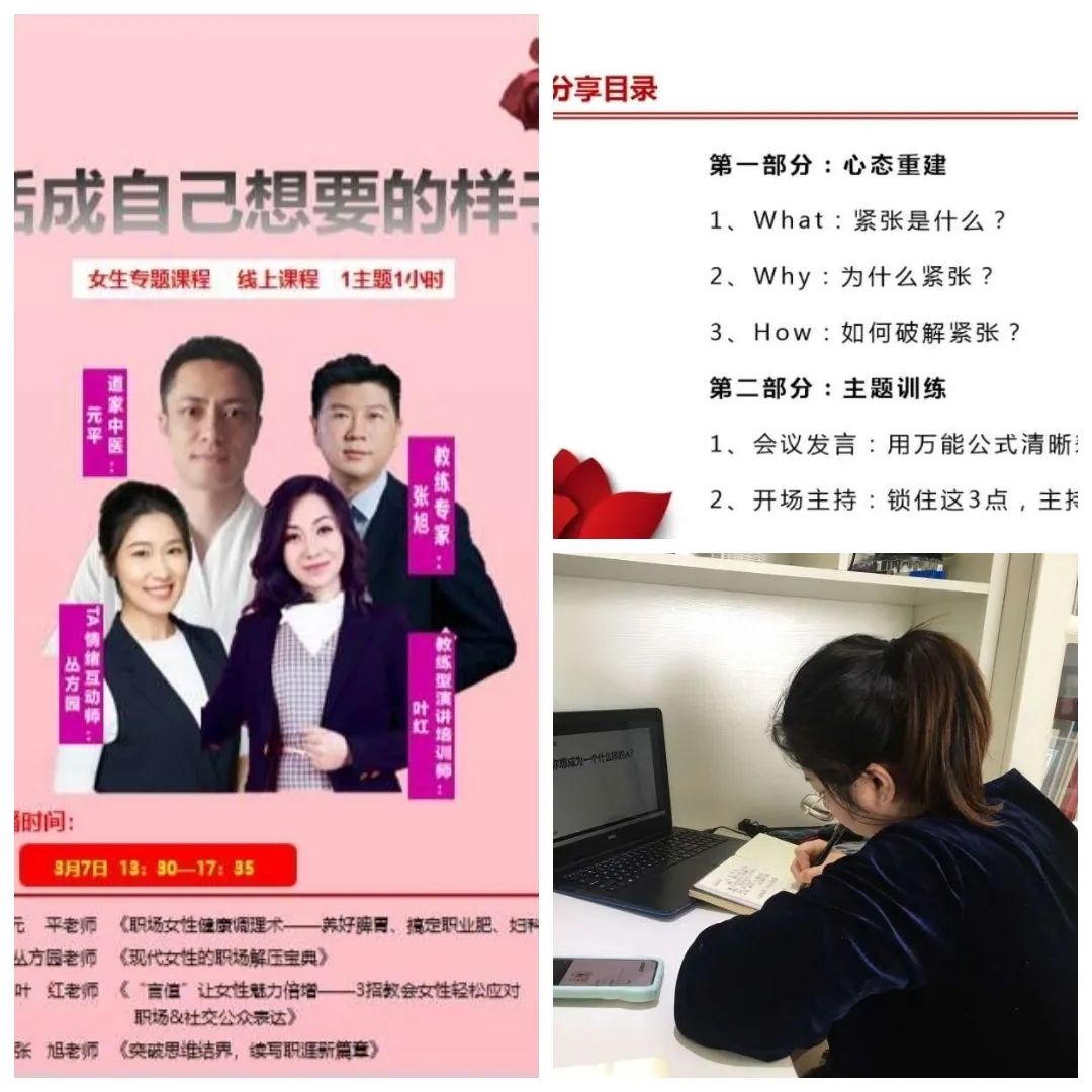 首先組織了全體女職工網(wǎng)上學(xué)習(xí)女生專題課程,《職場(chǎng)女性健康調(diào)理術(shù)》、《現(xiàn)代女性的職場(chǎng)解壓寶典》、《顏值讓女性魅力倍增》、《突破思維結(jié)界,續(xù)寫職涯新篇章》,通過學(xué)習(xí)四個(gè)主題,來關(guān)愛女職工身體健康及提升做人的魅力。