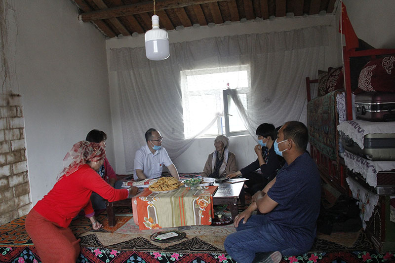 座談會后,張東海書記帶著藥箱、面粉等分別來到哈迪夏和卡米拉高齡老人家,親切與老人交談,詳細了解他們的家庭經(jīng)濟收入,子女教育、就業(yè),看病就醫(yī)等情況,仔細詢問他們在生產(chǎn)生活中遇到的困難和對村委會及工作隊的意見建議,祝愿老人身體健康、家庭和睦。