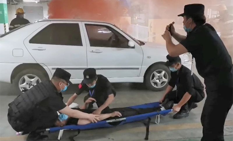 此次車輛碰撞起火、人員受傷救治應(yīng)急演練由集團(tuán)公司應(yīng)急事務(wù)部與新城產(chǎn)業(yè)公司共同協(xié)調(diào)指揮,調(diào)度國投物業(yè)、高鐵中隊(duì)進(jìn)行演練工作。此次應(yīng)急演練小組由滅火組、救援組、警戒組、疏散組,保障組組成。隨著指揮長發(fā)出應(yīng)急演練開始的信號(hào),各小組按既定預(yù)案展開應(yīng)急演練。