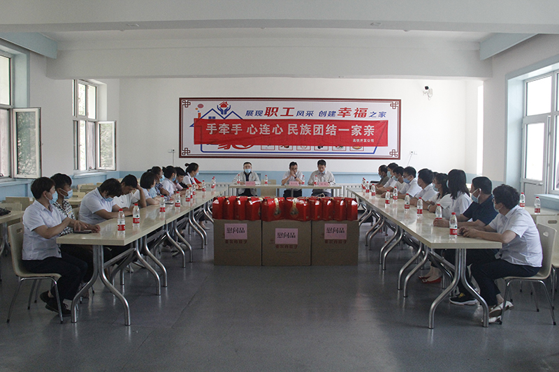 活動最后,高鐵開發(fā)(集團)領導和結親人員為民族同志們贈送端午慰問品,并合影留念,記錄這民族團結心連心的感動一幕。