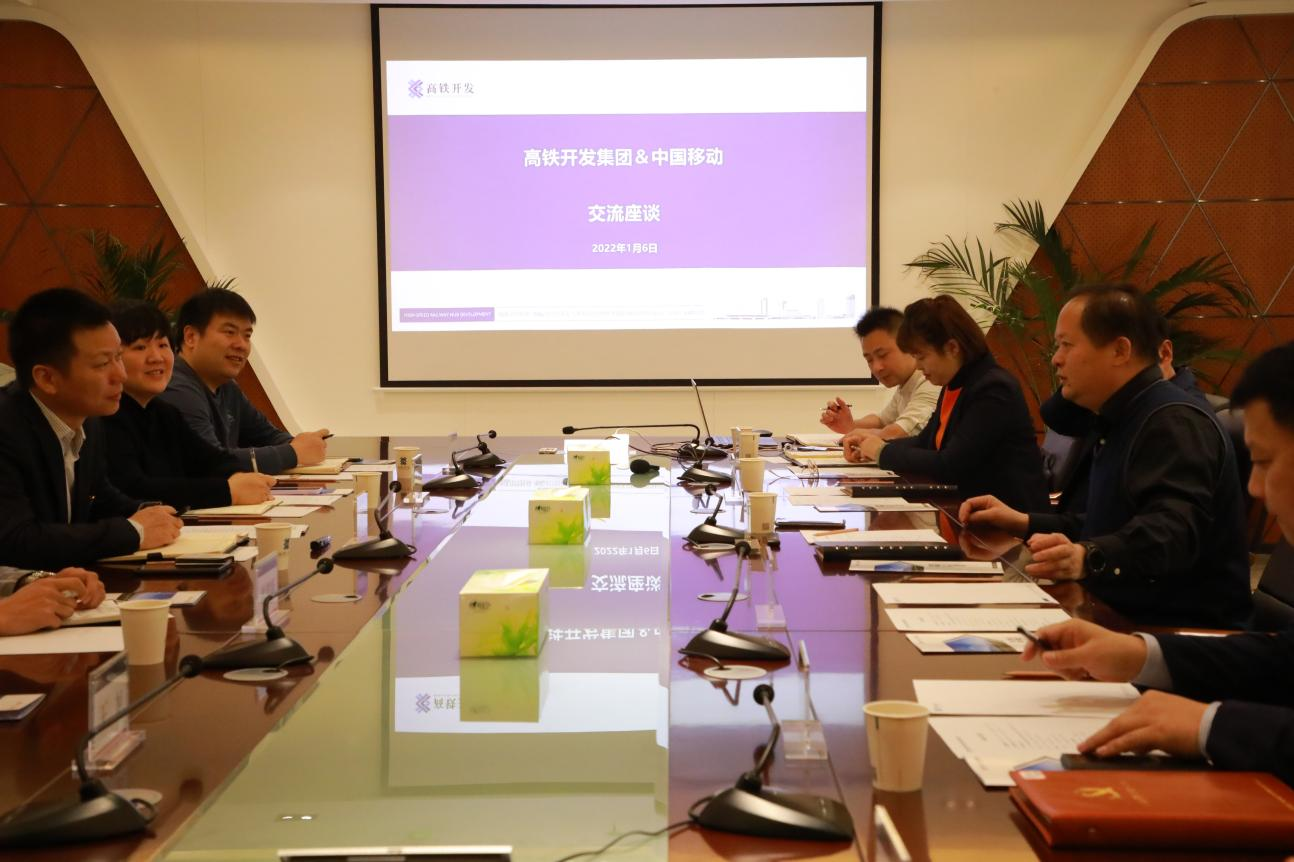 基于此戰(zhàn)略部署,高鐵開發(fā)集團于2022年1月6日,邀請中國移動通信集團新疆有限公司烏魯木齊市分公司(以下簡稱“中國移動”)相關(guān)領(lǐng)導(dǎo)來集團進行交流座談。高鐵開發(fā)集團黨委書記、董事長畢忠華,黨委委員、副總經(jīng)理馮光冉,大光售電公司總經(jīng)理熊斌輝參加座談會議。