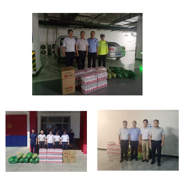 一聲問(wèn)候、一份清涼。為全力支持高鐵片區(qū)烏魯木齊站南北廣場(chǎng)及其周邊的安保工作,幫助執(zhí)勤人員緩解夏季的高溫影響,高鐵開(kāi)發(fā)集團(tuán)主要領(lǐng)導(dǎo)走訪慰問(wèn)了高鐵片區(qū)派出所、消防隊(duì)、交警大隊(duì)和治安大隊(duì),為他們送上了礦泉水、西瓜等慰問(wèn)品,同時(shí)為烏魯木齊站街道贈(zèng)送了遮陽(yáng)傘65把,并對(duì)他們?yōu)楦哞F片區(qū)經(jīng)濟(jì)社會(huì)發(fā)展、人民安居樂(lè)業(yè)作出的貢獻(xiàn)表示崇高的敬意和衷心的感謝。