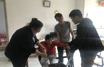 隊(duì)員們一邊調(diào)試著助行器、一邊與他們交流交談,了解他們現(xiàn)在身體狀況、康復(fù)治療、衣食難行的情況,以及他們對(duì)社區(qū)助殘工作的意見(jiàn)和建議。